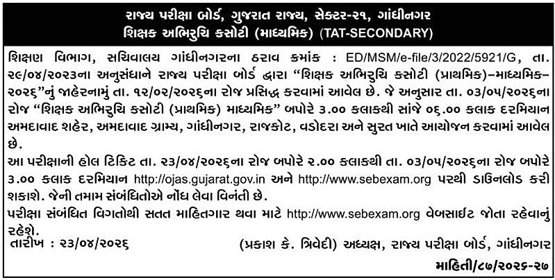 • TAT Secondary 2026 Preliminary Exam Date: 03 May 2026